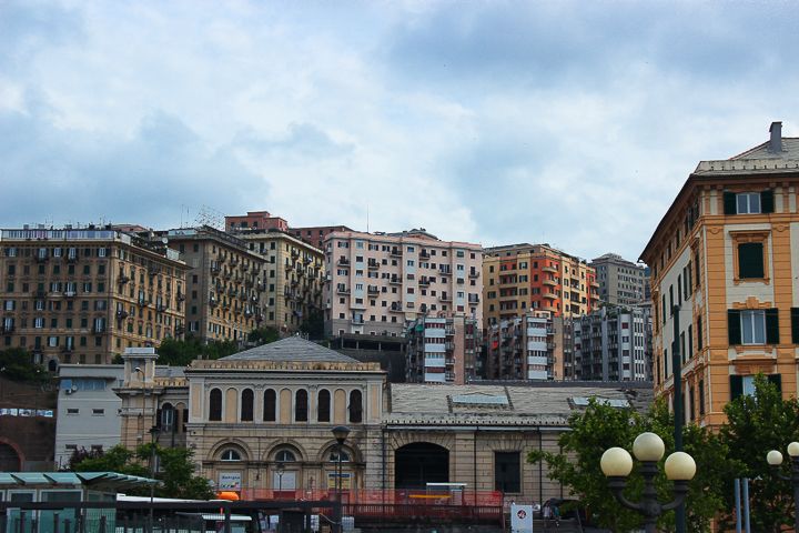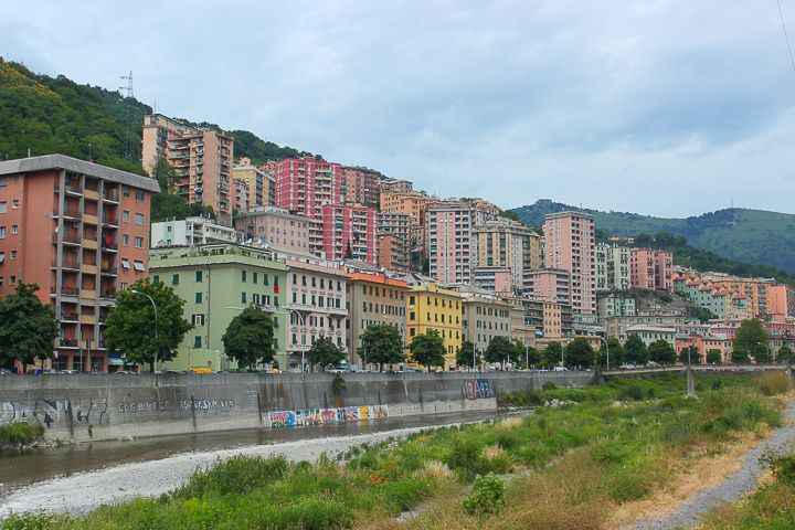 This was the part of Genoa I wanted to see: the stacks of colorful buildings and the rolling hills. We tried to take a bus up to a famous cemetery, but we could not figure out the bus schedule no matter how hard we looked at it. It was printed out on a piece of 8.5x11 paper and taped to the bus stop. And we never saw any buses stop the entire day! I'm telling you, don't go to Genoa on a Sunday unless you are prepared to walk. Or take a taxi. We walked for a while along the river and when we decided we had gone far enough, we tried to find a taxi. There were none to be found. Isn't that how it always works? Seriously, go to Genoa on a weekday.I will say this though, we probably passed like five people the entire time we were walking, so that is a bonus. Genoa is not very crowded on a Sunday.