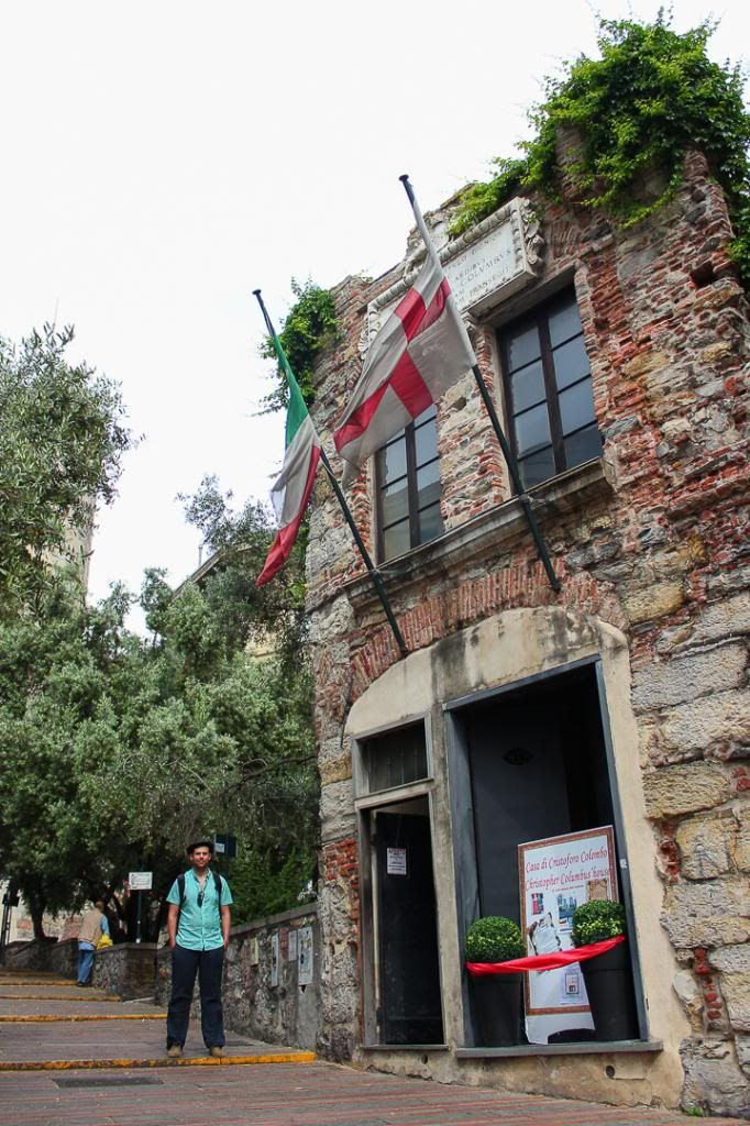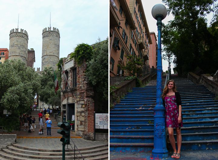 It's a pretty small house, as you can see. There used to be other houses just like it connected on either side of it all up and down the street. There's not much inside except a little bit of original flooring underneath some plexiglas, but we weren't allowed to take pictures anyway. It was still fun to see it and now we can say we have been inside Columbus's home. The tickets for the house also come with tickets to go up in the medieval gates to the city for an extra euro or something really cheap. The buildings in this part of Genoa were really pretty!