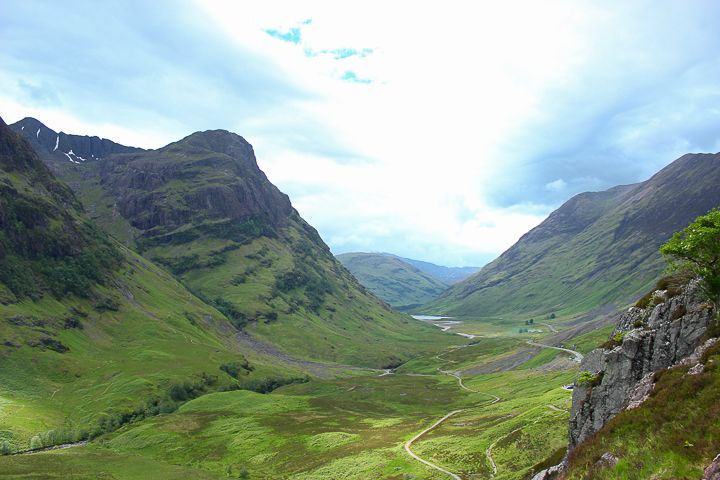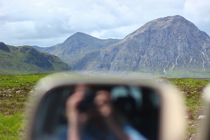 I love that hotels in Scotland have tartan carpets. I love that they serve black pudding at breakfast (even though I don't eat it). I love that you can legally camp anywhere you want for one night. The mist and the fog, the bright sunlight, any weather is beautiful in the Highlands--to me.