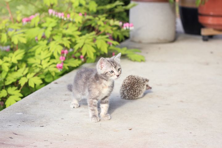 The kitty and hedgehog seemed to get along just fine once Molly realized that pouncing on him wasn't a very smart idea.