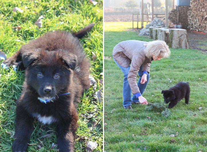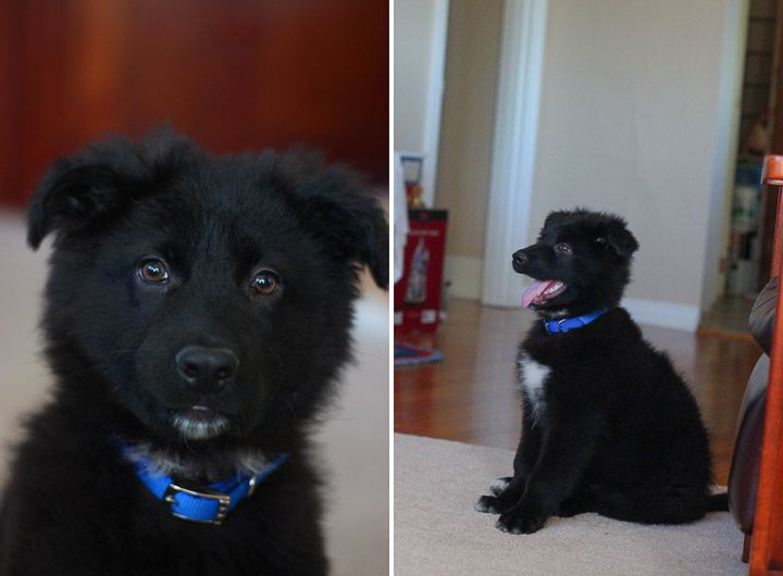 I made him sit and stay a lot (probably daily) so I could take his picture. He's such a proper puppy gentleman in the left picture. And a bear cub in the right picture.