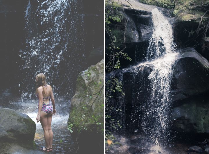 We went swimming in the arctic pond at the top of the waterfall and, once we were nice and frozen, we headed down to wade in the mysteriously warmer water at the bottom..and to sit in the waterfall. As you do.
